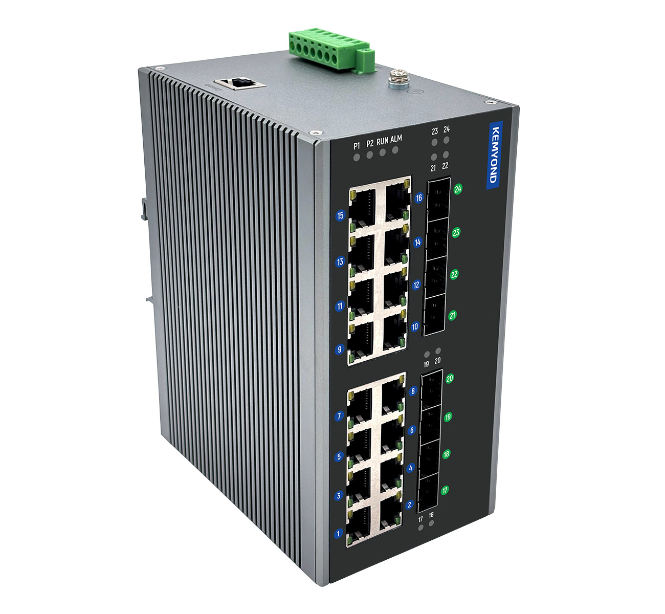 工業級交換機,防護等級IP40,工作溫度可達-40℃~ +85℃,滿足高海拔穩定運行,MTBF時間>350000h;